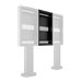 Positioned for mid-height visibility, this version supports one 55" Samsung OH display in either portrait or landscape orientation. Its modular design allows for future upgrades to dual or triple-screen setups as your signage needs evolve. The totem's base includes a secure compartment for housing media players, cabling, and power units-keeping your installation clean and protected.