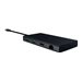 The Razer docking station is designed to enhance connectivity and performance with a compact form factor and an integrated 20 cm USB-C cable. It supports a variety of interfaces, including HDMI, Gigabit Ethernet, and multiple USB ports, making it a versatile solution for both home and office setups. Featuring high-quality aluminum construction, this docking station complements the aesthetics of modern tech environments. With the ability to deliver up to 85 W of power through USB-C Power Delivery, users can keep devices charged while enjoying seamless data transfer and video output at 4K resolution and a 60 Hz refresh rate.